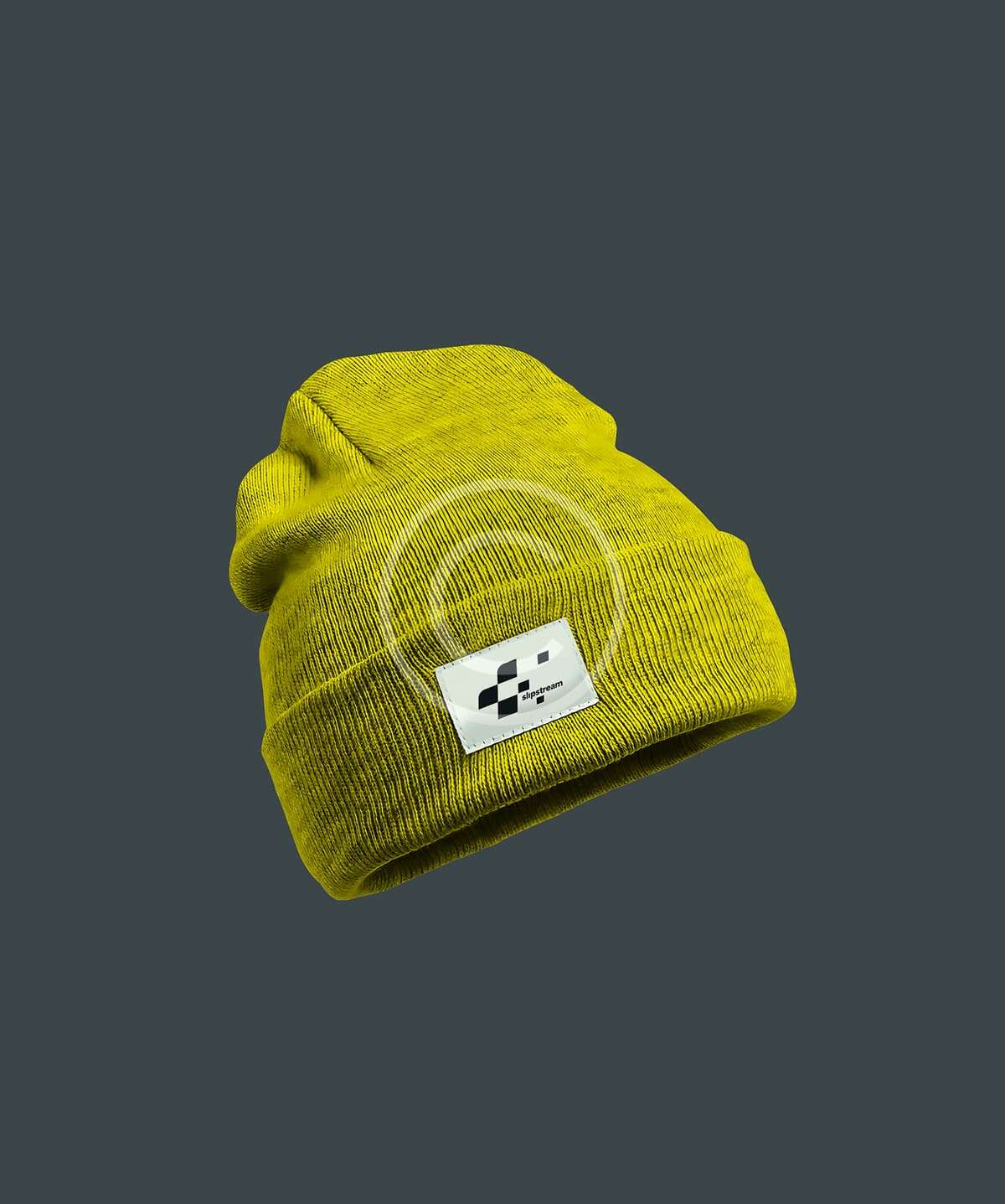 A soft cream knit beanie featuring a minimalist racing logo—perfect for colder days at the track or casual motorsport-inspired style.